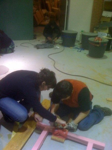 Colonnes truss, échafaudage, bâche microfibre, lumières, son réalisé par Sylvain Auburgan,
