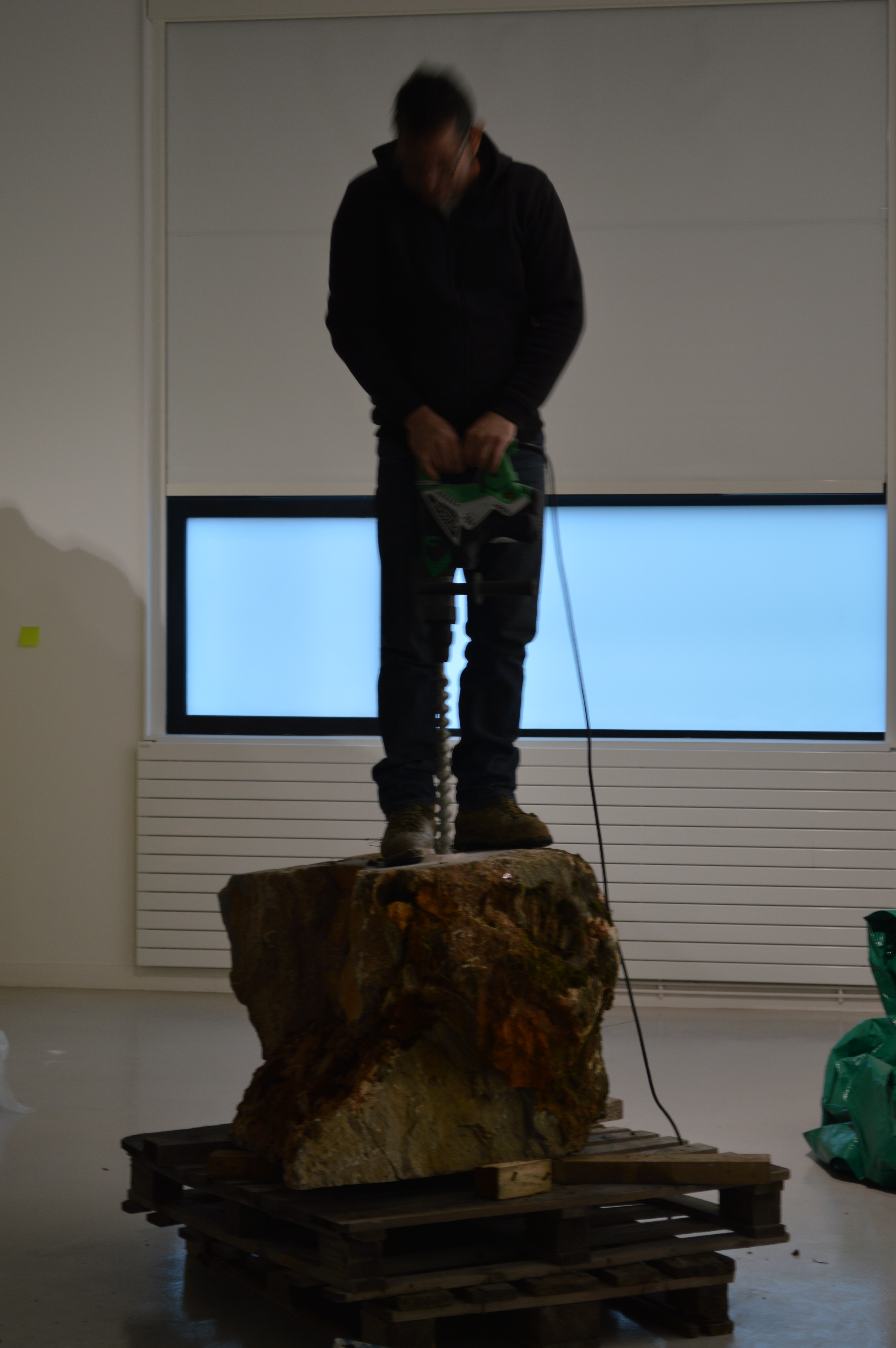 Il est transporté difficilement jusqu’à son emplacement performatif.