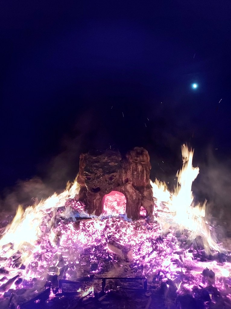Le nouvel être protecteur sorti de terre prendra soin de Gaïa. Formé en terre, tel un golem, il sera activé par un grand feu primitif en extérieur, et sans four. Il marquera l’ère de l’homme nouveau, osmotique avec son environnement.